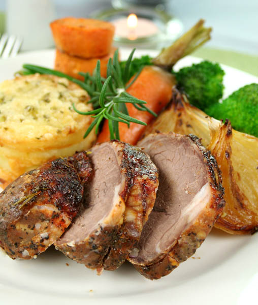 1. Se spală bine muşchiul de vită şi se curăţă de toate pieliţele. Se unge cu ulei, se înţeapă cu vârful cuţitului pe toată suprafaţa şi se îmbracă cu toate condimentele măcinate, formând astfel o crustă.