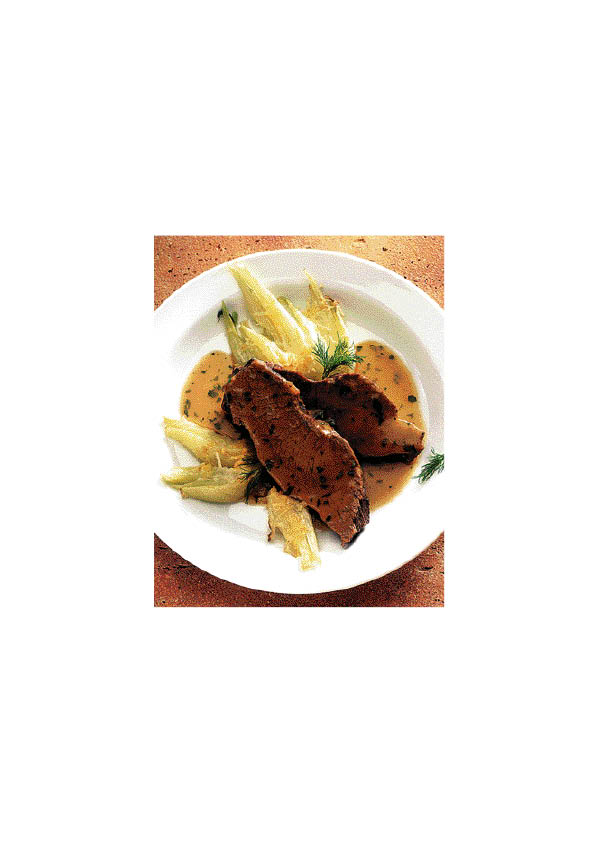 3. Într-o tavă unsă cu ulei se pun morcovii curăţaţi şi tăiaţi în patru, ceapa din sosul marinat, apă cât să acopere legumele şi deasupra carnea. Se lasă la cuptor 70 – 80 de minute, stropindu-se din când în când cu sosul din tavă şi vin. Când este aproape gata se unge cu puţin unt.