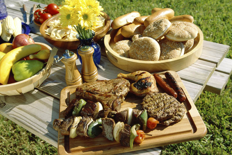 1. Toată carnea se spală, se curăţă şi se taie felii groase de 1 cm – carnea de vită şi 1,5-2 cm – carnea de porc. Pulpele de pui se curăţă, se spală şi se tapetează cu un şervet absorbant. Se condimentează fiecare după preferintă, iar carnea de vită se poate bate cu ciocanul de şniţele. Se lasă la macerat o jumătate de oră.