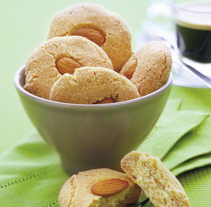 3. În tava de copt tapetata cu hârtie se pun mici gramajoare de coca, se asaza câte o migdala în mijloc si se dau la cuptor pâna ce devin aurii.