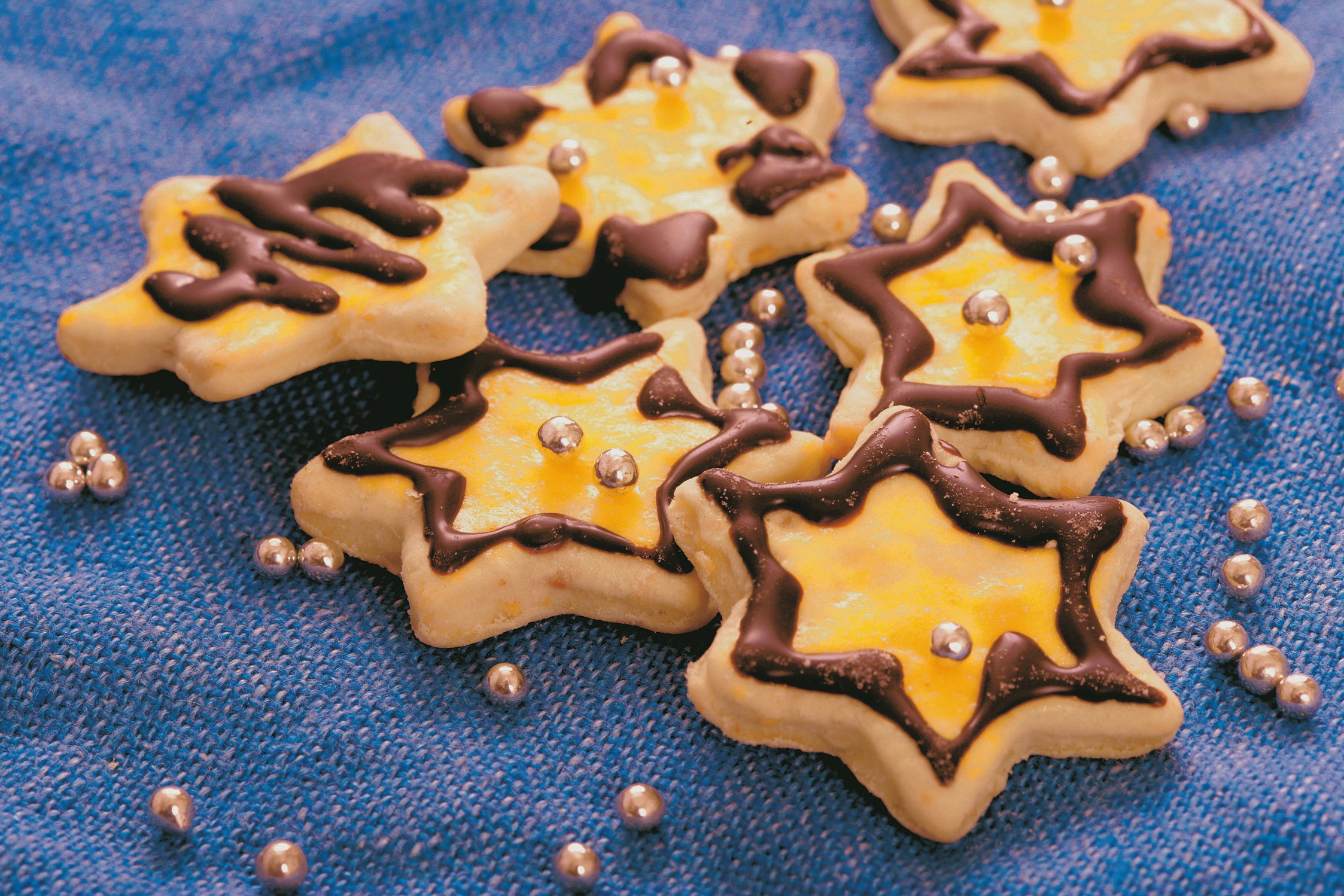 2. Aluatul se întinde într-o foaie groasă de 4-5 mm, se taie în formă de steluţe şi se aşază într-o tavă tapetată cu hârtie de copt. Se coc în cuptorul încins, la foc potrivit, aproximativ 10 minute.