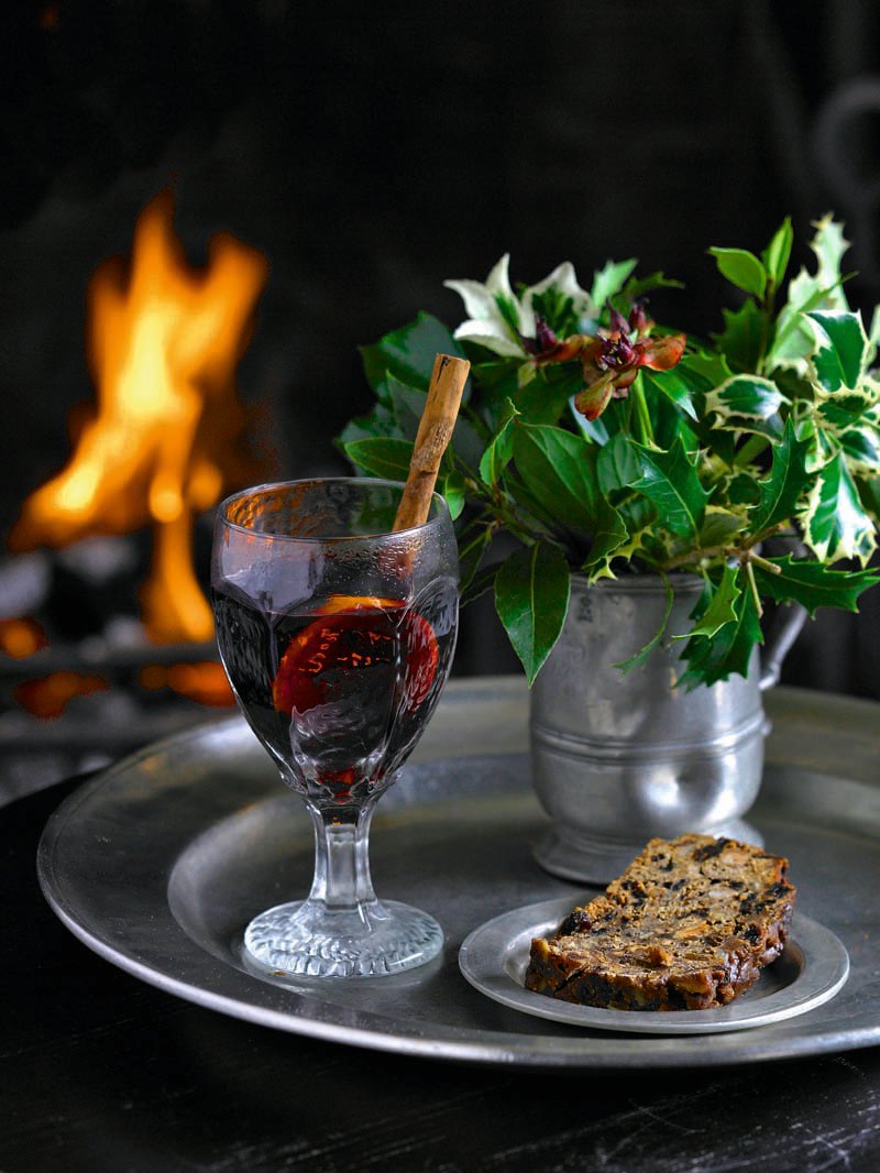 2. Se pune la fiert vinul cu portocala decojită şi feliată, cu mărul feliat, scorţişoara, zahărul, boabele de piper şi cuişoarele. Se lasă să dea un clocot, se acoperă cu un capac, se ia de pe foc şi se lasă cam 10 minute.