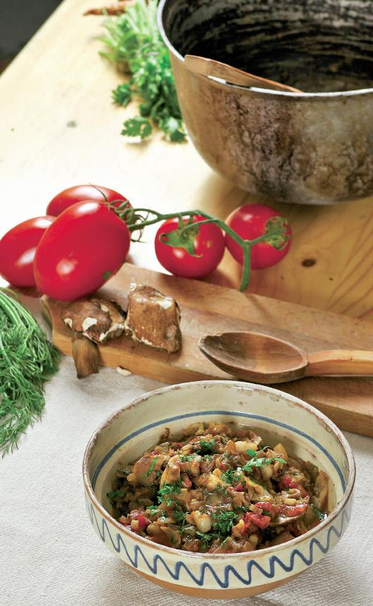 2. În ceaun, se căleşte ceapa tocată fin până devine aurie. Se adaugă roşiile cojite, tăiate mare. Când s-a stins ceapa cu roşiile, se adaugă hribii şi se pune imediat capacul.