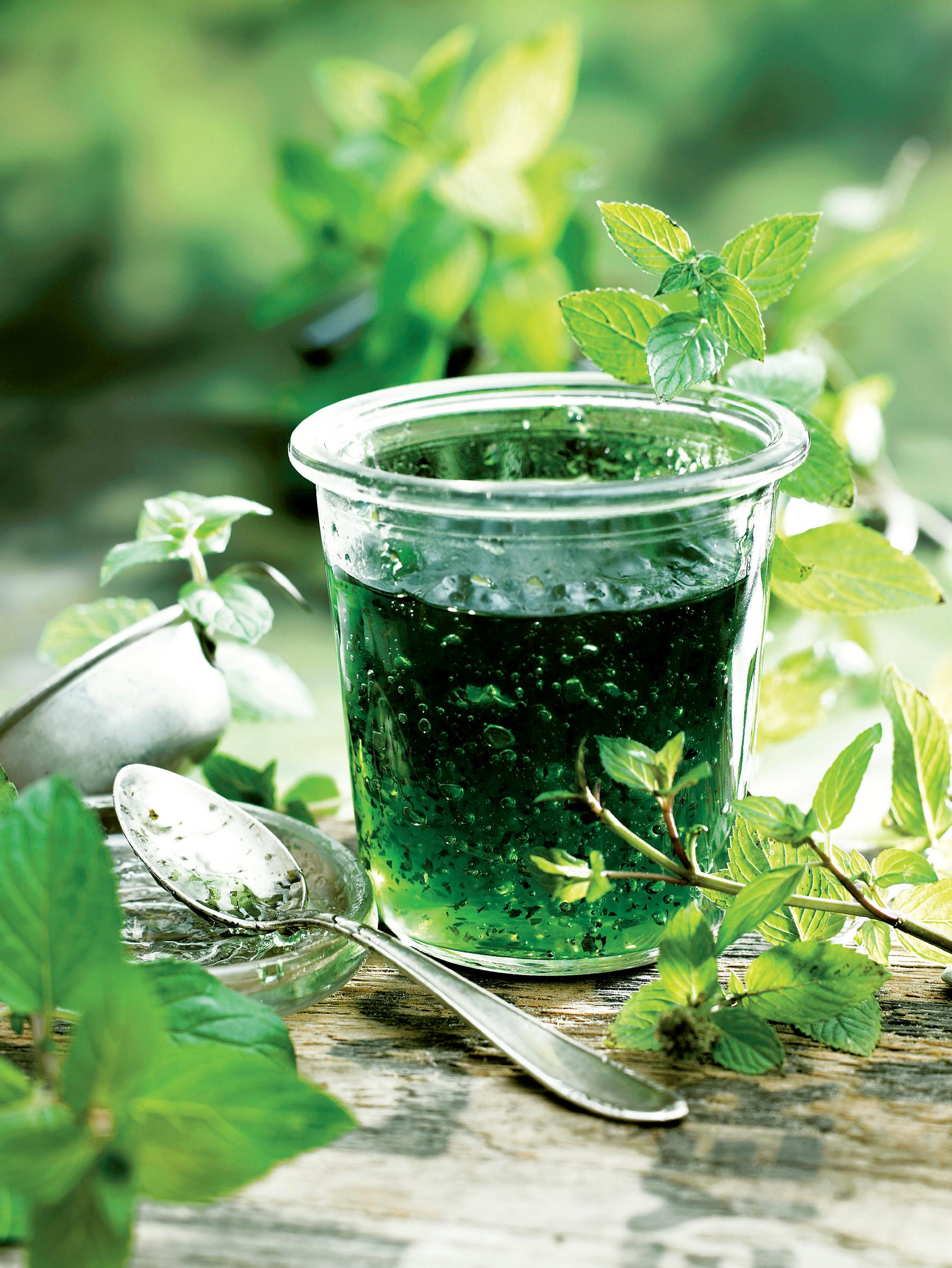 2. Se adaugă frunzele de mentă şi se lasă aproximativ 10 minute. Apoi se strecoară într-un vas curat, se reîncălzeşte la foc mic şi se adaugă gelatina.