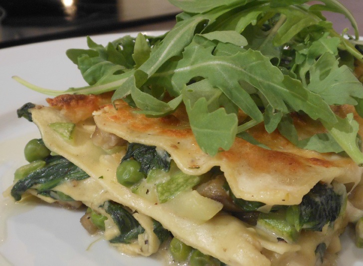 O delicioasă lasagna de spanac cu mazare, dovlecei şi vinete. Reţeta e foarte simplă. Vezi cum se face!