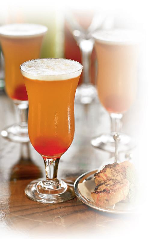 2. Se pune în fiecare pahar puţin suc concentrat de vişine, apoi se adaugă mustul amestecat cu sucul de ananas.