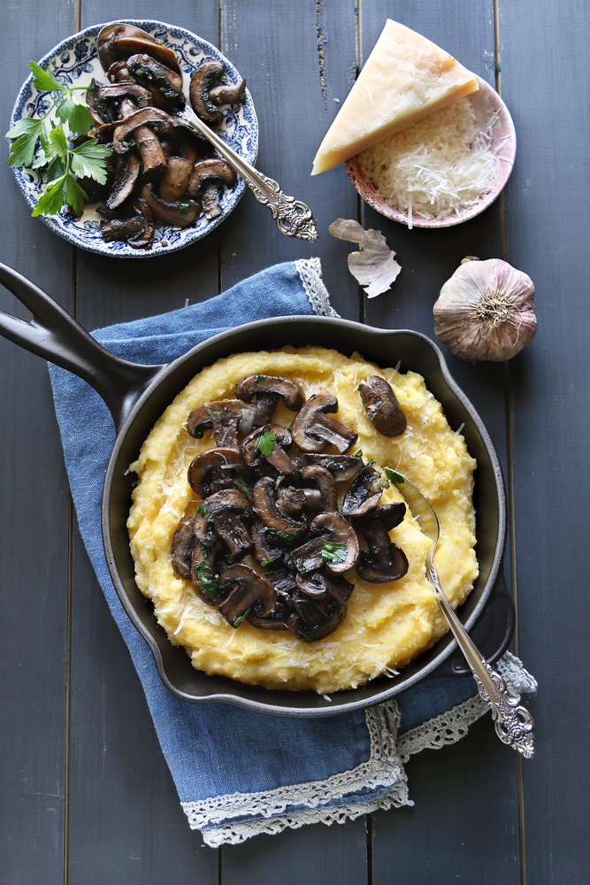 Mămăliguţa românească nu trebuie să fie mereu clasică şi tradiţională, cu brânză şi smântână, sau ca garnitură la sarmale. Mămăliguţa poate deveni un preparat sofisticat, alături de un sote de ciuperci delicios.