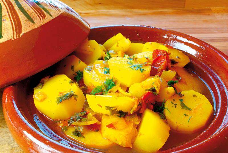 3. După ce s-au fiert cartofii, se pun roşiile din cutie sau pasta de roşii, foaia de dafin şi rozmarinul şi se bagă în cuptor să se rumenească.