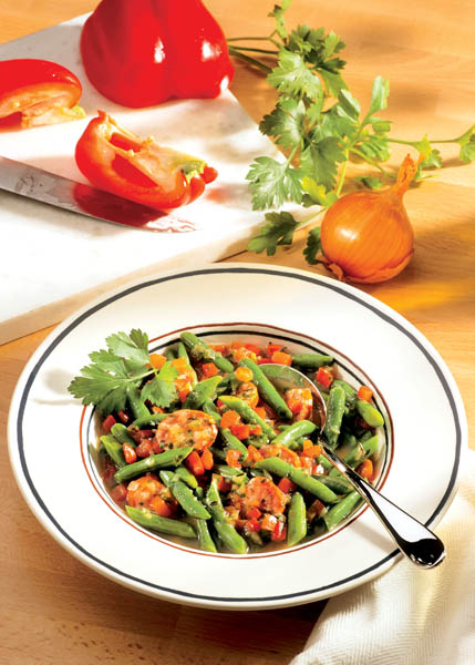 Mâncare de fasole verde cu cârnaţi