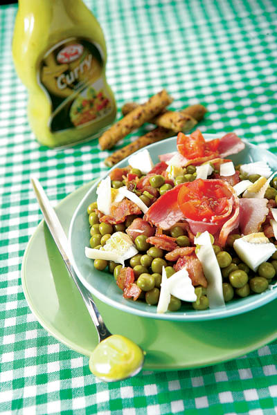 4. Se pune apoi mazărea într-un caston şi se serveşte alături de costiţa prăjită şi oul fiert, tăiat bucăţele.