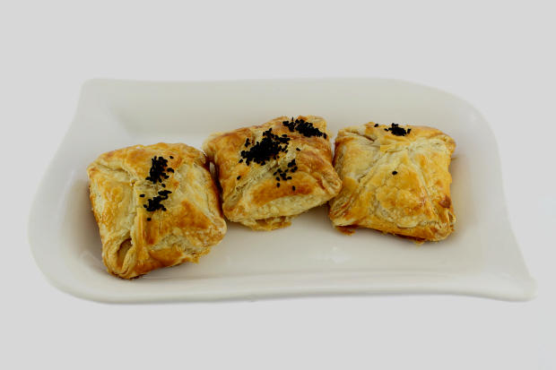 În mijlocul fiecărui dreptunghi se pune un pătrățel cu umplutură. Apoi se împăturesc. Se aduc colțurile spre mijloc, simplu: întâi se trag laturile verticale până la jumătate, apoi cele orizontale – rezultând un pătrat. Pe tava unsă cu unt și pe care ați pus, în prealabil, o hârtie de copt, puneți pătrățelele umplute obținute, cu partea pliată în jos.