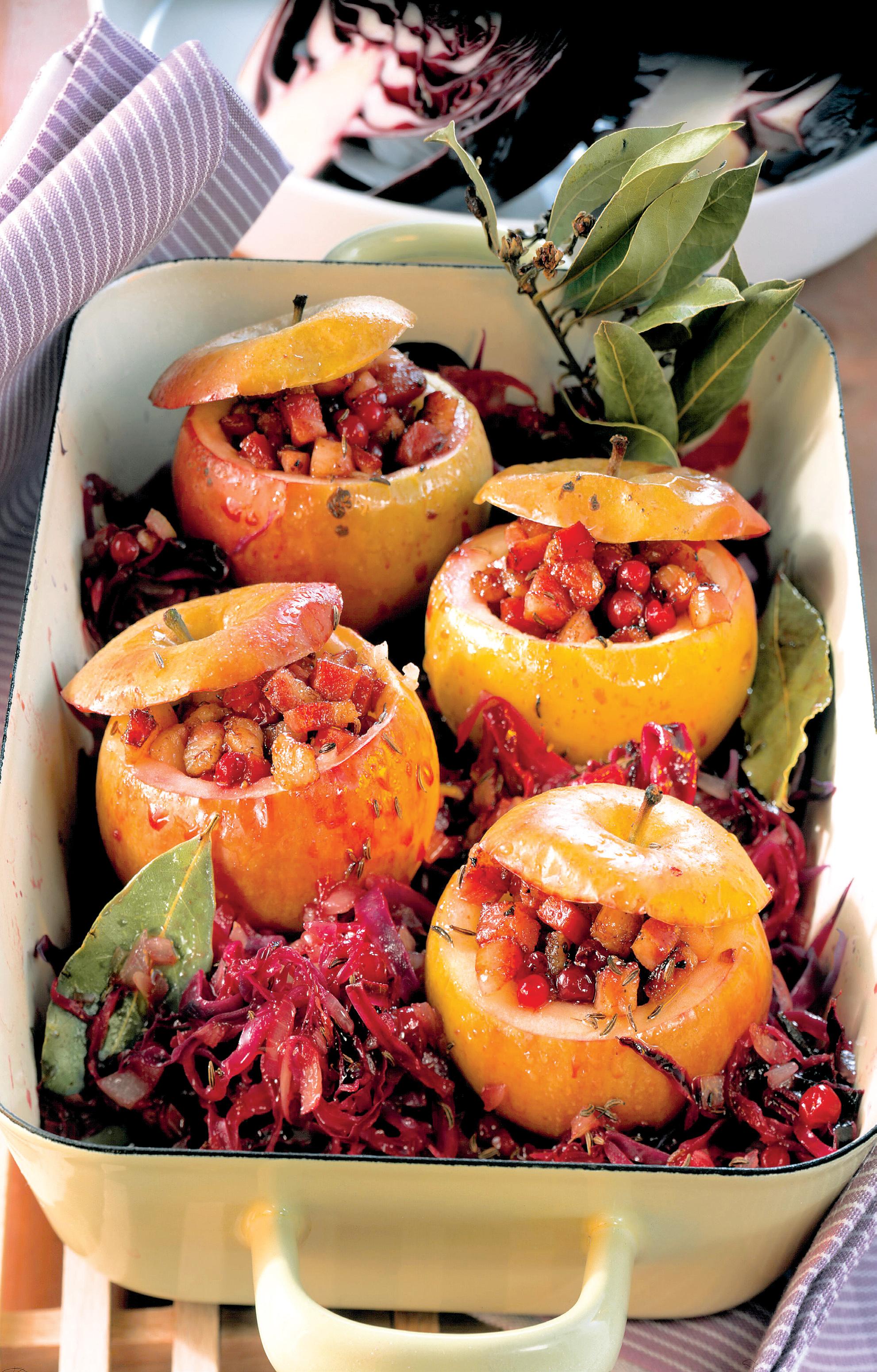 Mere umplute pe pat de varză roşie