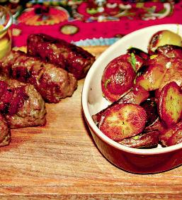 4. Între timp, se pregăteşte grătarul, se încinge, se unge cu grăsime sau cu ceapă şi se pun micii. Se răsucesc de pe o parte pe cealaltă la interval de 7-8 minute ca să se rumenească uniform. După ce s-au făcut, se iau de pe grătar şi se servesc calzi, cu sos de muştar şi cu cartofi copţi cu rozmarin.
