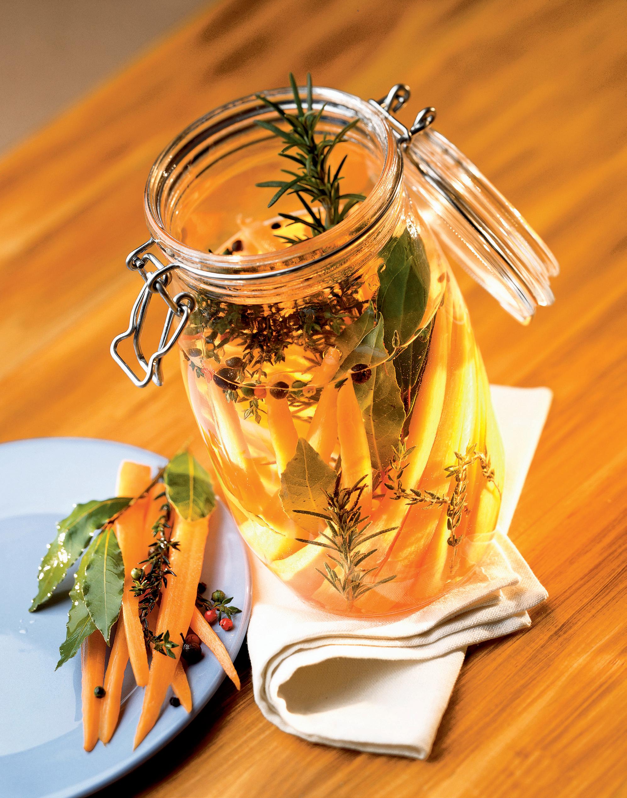 3. Se strecoară, se aşază morcovii în borcane şi se toarnă deasupra zeama, cu tot cu verdeţuri şi condimente, fără să se umple recipientul la maximum.