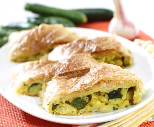 3. Ceapa se curăţă, se taie, se căleşte în unt, se adaugă ciupercile şi verdeaţa şi se amestecă cu ouăle. Se pune un strat de conopidă şi dovlecei şi unul de ciuperci şi se coace.