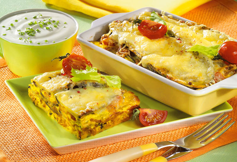 4. Se coace în cuptorul încins, la foc potrivit, 40-45 minute. Când se serveşte, se adaugă smântână potrivită la gust cu sare, piper şi verdeaţă tocată mărunt.