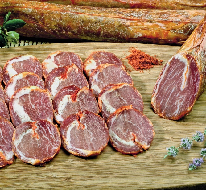 3. Apoi, se pune într-o ţesătură de plastic de tip plasă, se leagă la capete şi se lasă pentru două luni într-un loc uscat şi aerisit. Se consumă crud, tăiat în felioare subţiri.