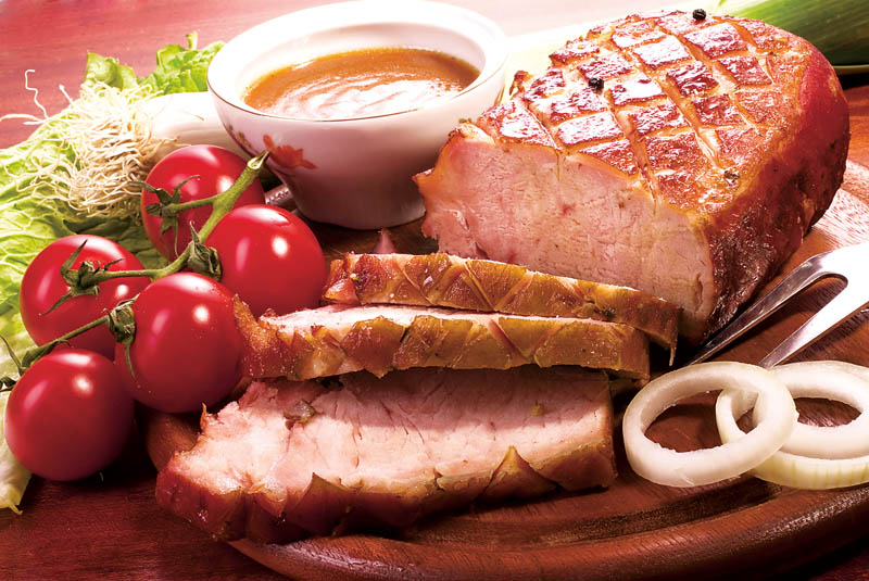 3. Se verifică dacă s-a pătruns muşchiul de porc şi se scoate din cuptor. Se serveşte împreună cu sosul picant de ceapă.