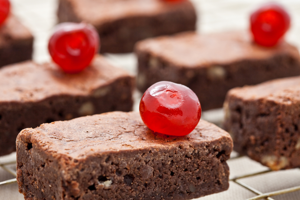 ► Se taie aluatul în 15 pătrate, apoi fiecare pătrat în două triunghiuri şi se serveşte cu sos şi cireşe.