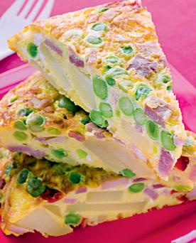 - Mazărea se spală în două trei ape şi se pune apoi la scurs, într-o strecurătoare. Pâinea se pune să se înmoaie în laptele călduţ şi, după ce s-a înmuiat, se amestecă cu ouăle bătute, cu brânza dulce, cu mazărea, cu şunca presată şi caşcavalul tăiat felii potrivite. Se condimentează cu sare, în funcţie de preferinţe.