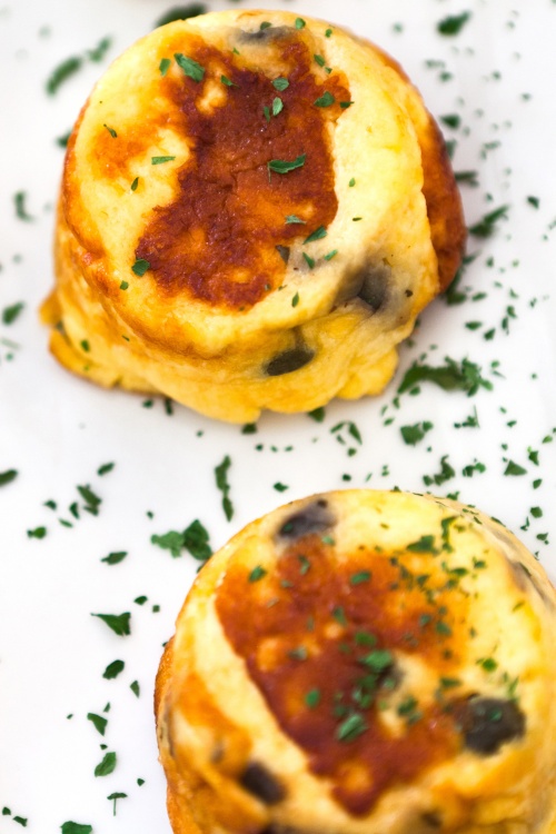 4. După ce s-a rumenit pe ambele părţi, se scoate cu atenţie pe o tavă şi se lasă câteva minute să se răcească. Se taie cubuleţe sau ce formă doriţi şi se ornează cu frunzuliţe de cimbru proaspăt.