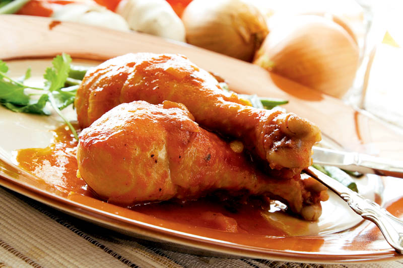 3. Se acoperă şi se lasă să fiarbă înăbuşit, până ce carnea se înmoaie şi sosul scade şi se leagă puţin. Se potriveşte la gust cu sare şi piper şi se serveşte imediat.