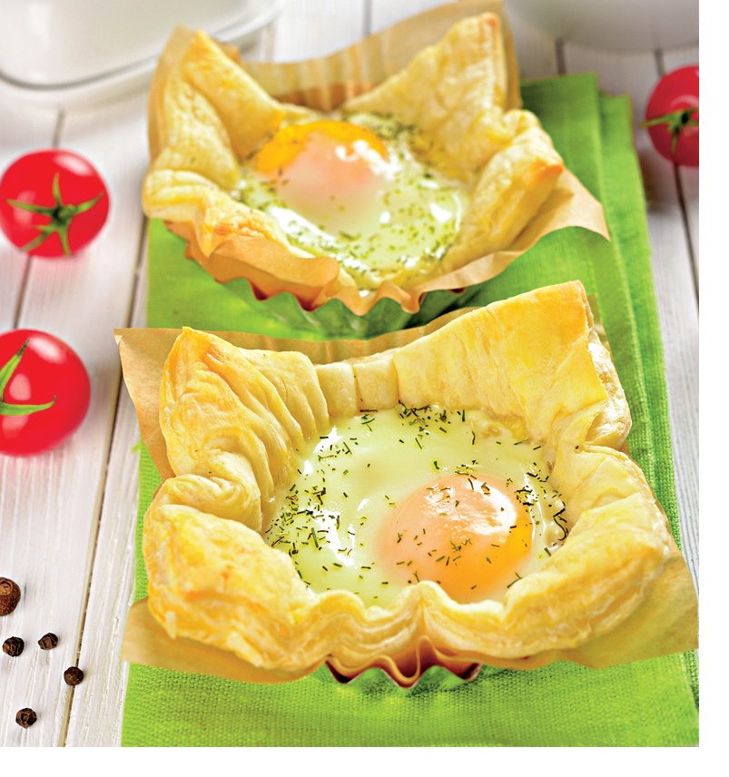 3. Se pune câte un ou crud în fiecare formă, peste aluat şi se dau la cuptorul gata încins.
