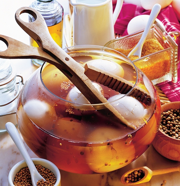 Nimic nu-i face mai mare placere meseanului decât privelistea unor platouri cu preparate colorate. Iata o propunere gustoasă, de ouă murate:
