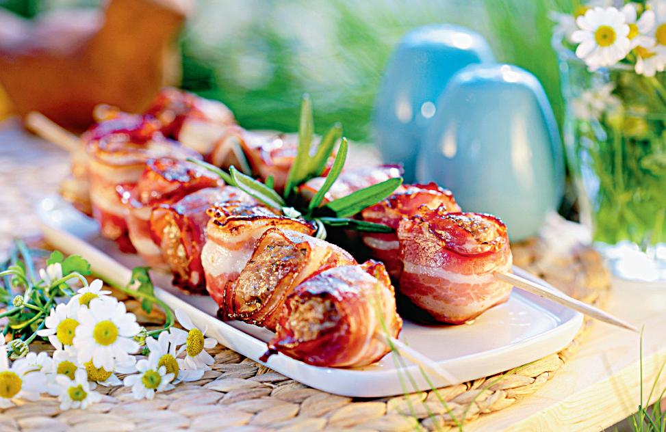Se modelează carnea de mici în formă de chifteluțe, apoi se învelește fiecare într-o feliuță de bacon. Se înfig 6-7 chifteluţe astfel prăgătite pe bețele de frigărui și se prăjesc pe grătar.