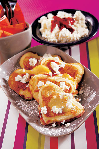 3. Se lasă la scurs pe o hârtie absorbantă, se pudrează cu zahăr şi se servesc imediat cu brânză proaspătă, smântână şi gem.