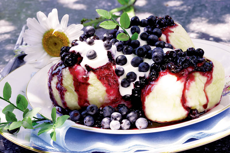 4. Se lasă apoi la scurs şi se servesc fierbinţi cu zahăr pudră, smântână, dulceaţă de afine şi fructe proaspete.