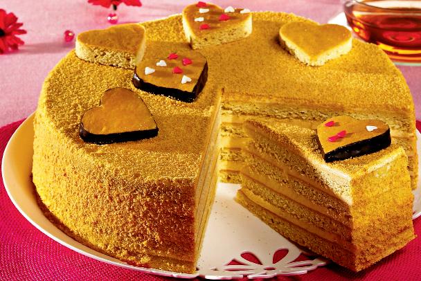 5. Se aşază o foaie pe un platou şi se unge cu cremă. Se continuă acest procedeu până la ultima foaie.