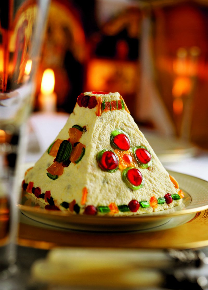 3. Forma de copt, de preferat ceramică, se umple cu compoziţia preparată anterior. Se presează foarte bine şi, dacă e necesar, se acoperă cu folie alimentară şi se pune o greutate deasupra ca să preseze bine. Vasul se dă la frigider şi se lasă 24 h. Înainte de servire, se ornează cu fructe confiate, jeleuri, bucăţele de rahat sau bomboane, după preferinţă.