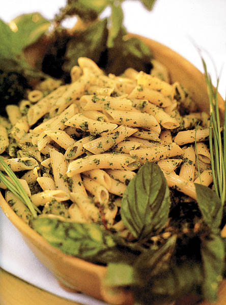 3. Pastele fierte se pun într-un castron suficient de mare, apoi se adaugă sosul de verdeaţă şi se amestecă până se acoperă uniform toate pastele. Se acoperă, se lasă 10 – 15 minute şi se pot servi.