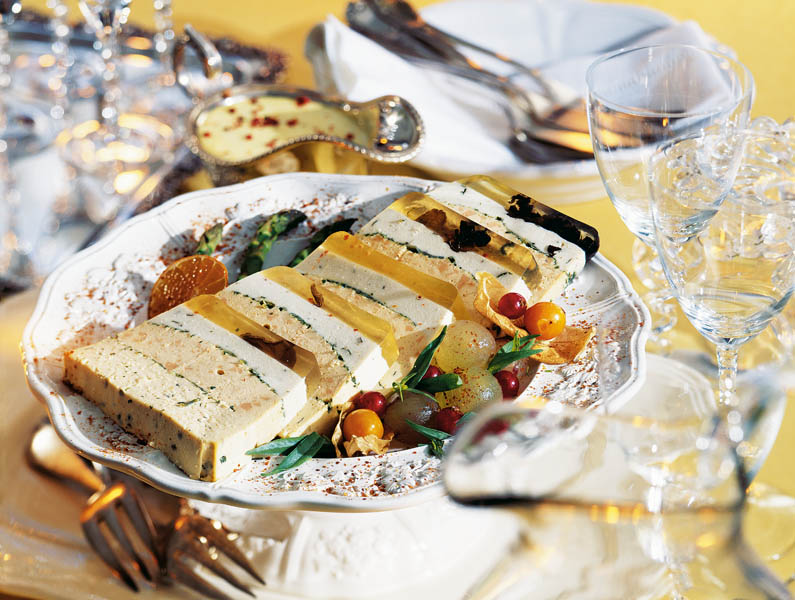 5. Când aspicul s-a închegat, se pun straturi succesive de pastă de peşte alb, verdeaţă tocată mărunt, pate de ficat frecat cu unt, şi pastă de crap. Se lasă la frigider până a doua zi, apoi se răstoarnă şi se taie felii. (Se scoate foarte uşor din formă, dacă se cufundă vasul în apă fierbinte, 15-20 secunde).