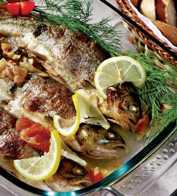 Păstrăv la tavă cu sos alb