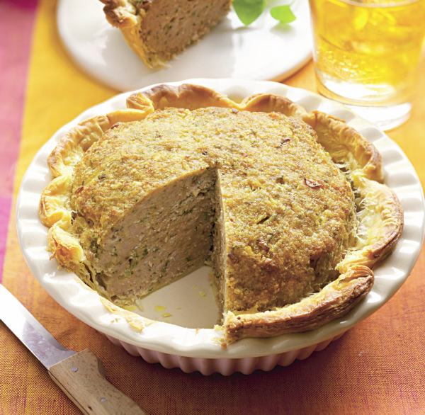 1. Cu doua zile înainte de prepararea pateului, se pregateste crusta, pentru care se amesteca untul moale cu galbenusurile, sarea si faina cu ajutorul degetelor, pâna la omogenizare, si apoi se toarna apa, puţin câte puţin. Se framânta pentru a obţine un aluat elastic, care se aduna într-o bila. Se pune la frigider pentru 24 de ore, învelita în folie alimentara.