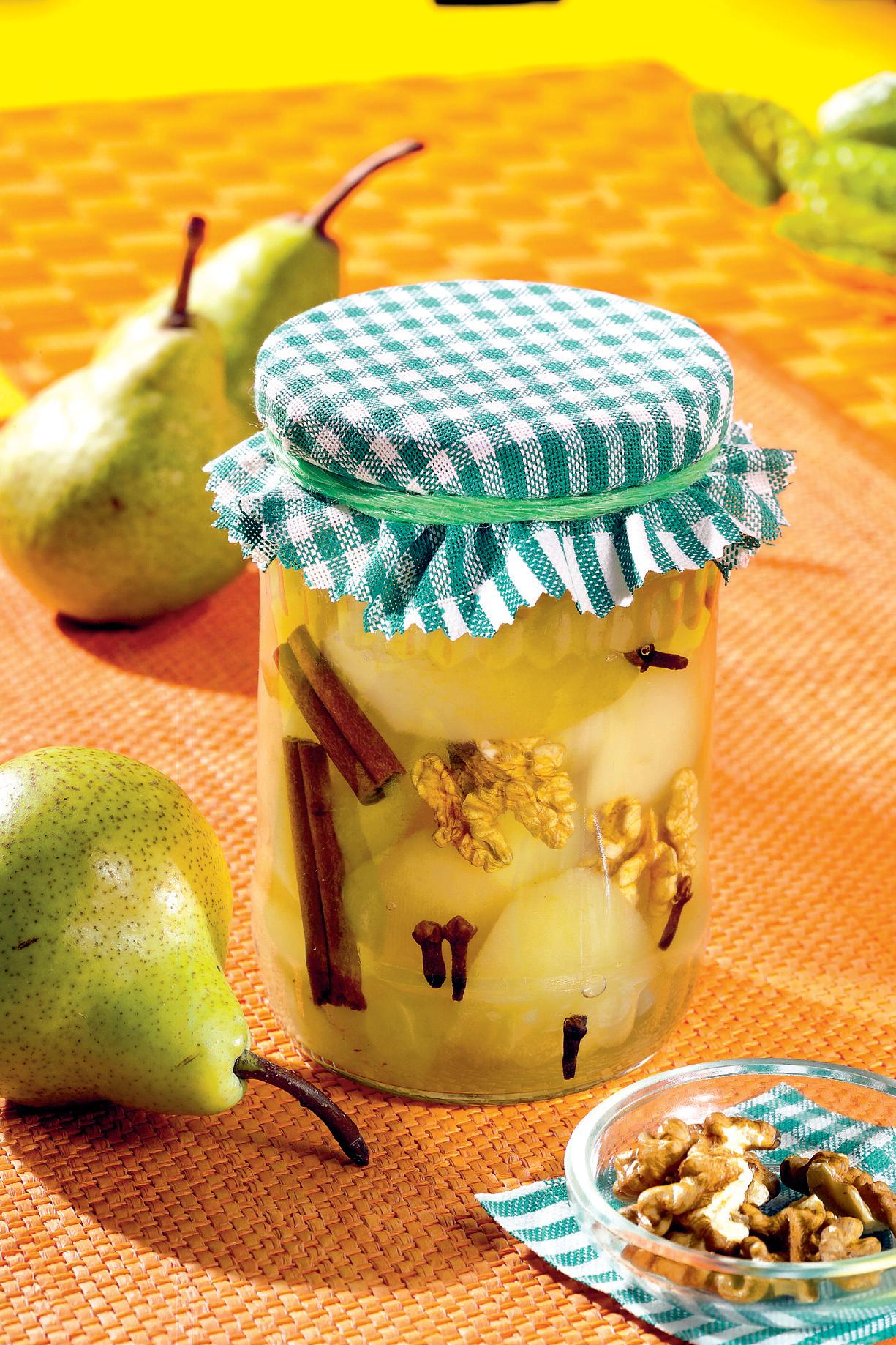 2. Separat, se pun la fiert zahărul şi apa şi se lasă pe foc până ce zahărul se dizolvă complet. Se adugă apoi perele, scorţişoara şi cuişoarele şi se lasă pe foc până se înmoaie perele.