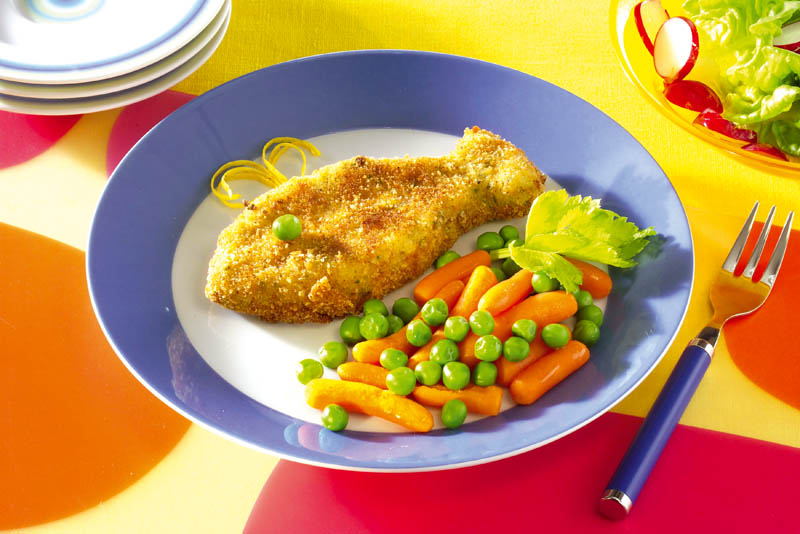 3. Pentru garnitură, legumele se aleg după preferinţele copilului. Se curăţă, se spală şi se fierb în apă cu sare, iar când se servesc se stropesc cu unt.