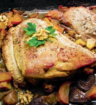Piept de curcan cu nuci şi legume