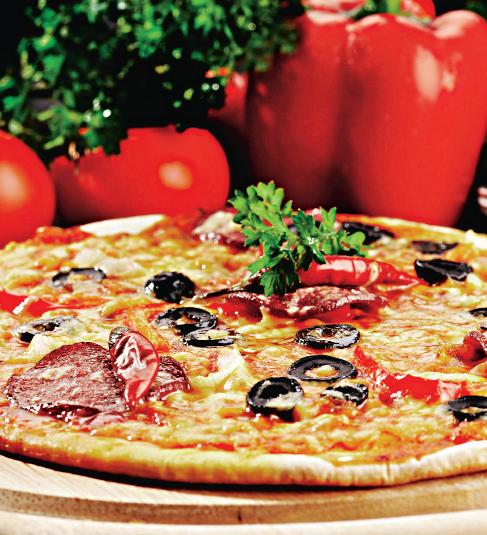 4. După ce a crescut aluatul, se împarte în patru şi se întinde fiecare bucată cu sucitorul. Se presară caşcaval, piper, sare, ceapă, salam, cimbru, măsline, felii de ardei şi roşii şi se bagă în cuptor. După ce s-au copt, se servesc cu sos de roşii picant sau dulce.