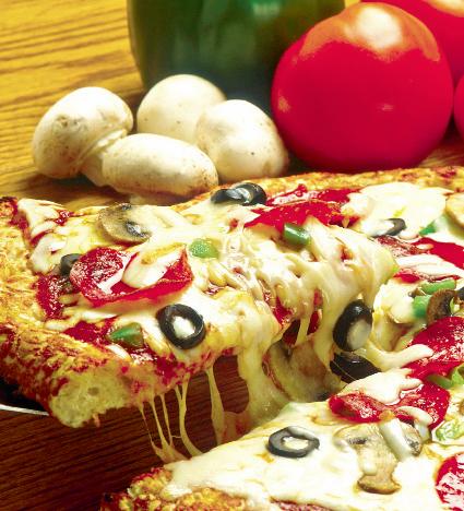 3. După ce a crescut aluatul, se întinde într-o tavă şi se pun ingredientele. Pentru început, se întinde pasta de roşii, se adaugă un strat de mozzarella tăiată fâşii, ciuperci tăiate feliuţe, ardei tăiaţi mărunt, măsline şi roşii tăiate felii. Se bagă tava în cuptorul încins şi se lasă aproximativ 40 de minute. Se serveşte cu sos de roșii picant sau dulce.