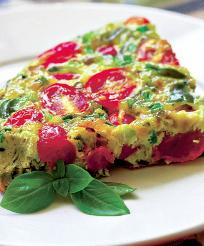 4. Se asezonează pizza cu sucul de roşii, bucăţelele de soia, ardeii şi roşiile tăiate felii şi se condimentează cu sare, cimbru proaspăt şi piper. Se bagă tava în cuptor şi, după ce s-a copt, se serveşte cu sos de roşii picant sau dulce.