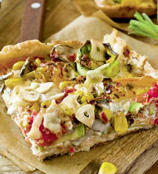 3. După ce a crescut, se întinde aluatul cu sucitorul, se unge tava cu puţin ulei, se aşază foaia în tavă şi se pun ingredientele. Se stropeşte cu suc de roşii şi se presară caşcavalul ras. Se bagă în cuptorul încins şi, după ce s-a rumenit, se serveşte cu suc de roşii.