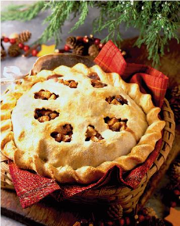 3. Deasupra se pune a doua foaie de aluat, care se decupează, din loc în loc, cu ajutorul formelor de fursecuri. Se răsuceşte pe margini aluatul rămas de la foaia de bază şi se unge plăcinta cu ou. Se coace la cuptor, la foc potrivit, 25-30 minute. Când este gata, se pudrează cu zahăr amestecat cu scorţişoară.