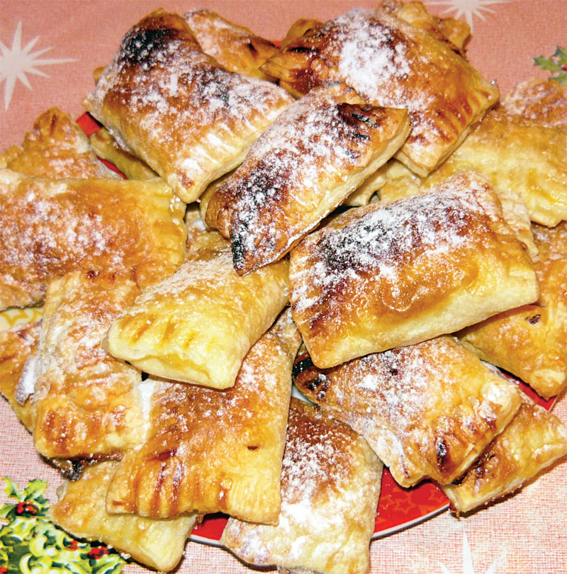 2. Se taie în dreptunghiuri, după care se pune dulceaţă în mijlocul fiecărei plăcinte (se pot umple cu orice fel de dulceaţă, rahat sau brânză de vaci).