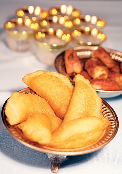 3. Aluatul se întinde într-o foaie fină, de maximum un centi­metru grosime, şi din ea se decupează cercuri mai mici sau mai mari. Pasta de curmale se amestecă bine cu susanul şi apa de portocale.