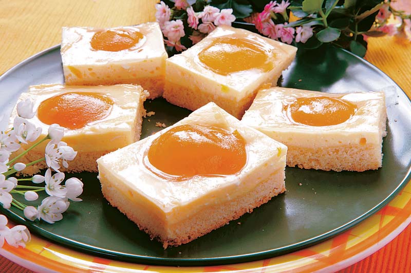 4. Se prepară jeleul de fructe cu suc de fructe, apoi se întinde pe prăjitura coaptă, după ce aceasta s-a răcit puţin.