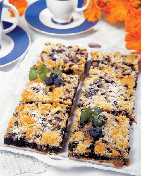 4. Se bagă la cuptorul bine încins şi, cu 15 minute înainte, se presară aluatul nisipos, care se obţine prin amestecarea tuturor ingredientelor. Se mai lasă puţin în cuptor. Prăjitura cu gem de fructe se serveşte ornată cu fructe confiate sau din dulceaţă şi cu frunze de mentă.