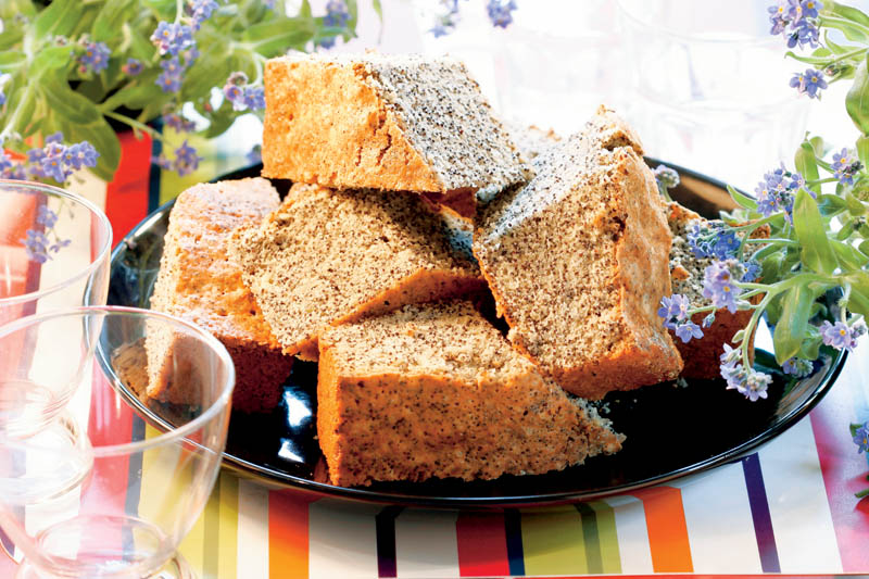 3. În crema de unt se adaugă macul fiert în lapte, apoi făina cernută cu praful de copt şi se amestecă uşor. Se toarnă aluatul într-o tavă unsă cu unt şi tapetată cu puţină făină şi se coace în cuptorul dinainte încins, la foc mic, 50-60 de minute.